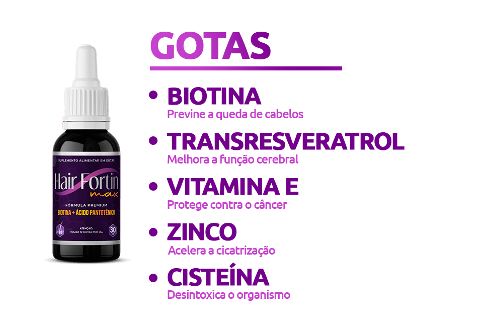 O HAIR FORTIN MAX é um suplemento oral que deve ser tomado em apenas uma dose diária, ou seja, uma cápsula no dia ou 12 gotas no dia. Não tome a capsula e as gotas no mesmo dia. Se em um dia você tomar uma capsula, não precisa tomar as 12 gotas. Você pode intercalar e tomar uma capsula em um dia, e 12 gotas no outro dia e assim sucessivamente.